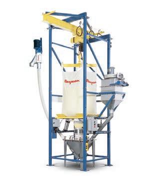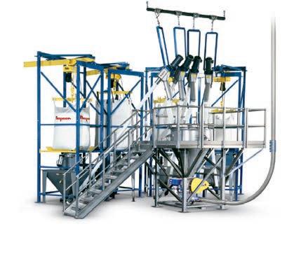 Bulk Bag Discharging Systems can loosen solidified material and meter it into liquid streams (shown), screeners, size reduction equipment and continuous blenders—automatically.