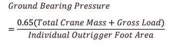 For all terrain cranes, pressure is applied by the outrigger feet. This pressure can be calculated by finding the vertical reactions forces at each of the feet, however Queensland regulations specify that this value should be calculated as 65 per cent of the total load divided by outrigger foot area: