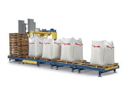 Flexicon Bulk Bag Filling Lines automatically dispense pallets, fill bulk bags, and disconnect/accumulate filled bags, minimising operator involvement.