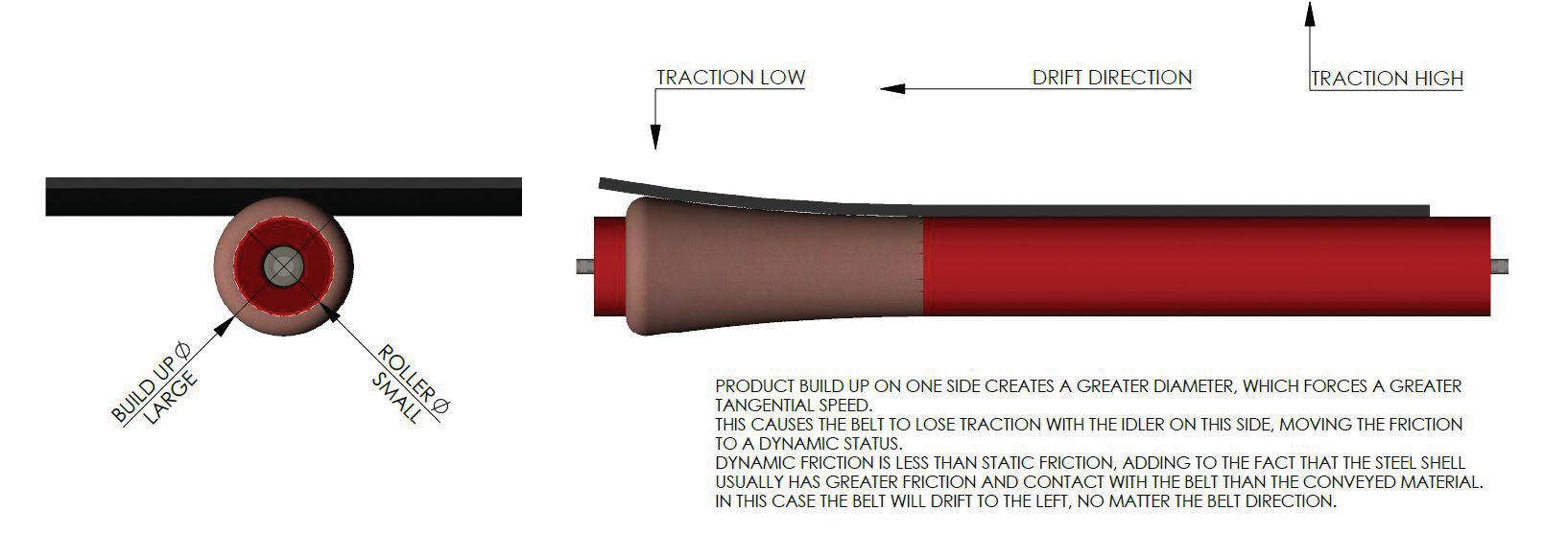 Spiral rollers were soon discovered to generate a tracking force as customers started to fit them in the direction that cleans to the outside of the belt with threads working away from the centre. This can make sense from a cleaning perspective but had an adverse belt tracking response. Hence now they are used for their tracking ability as well as cleaning. They are also easy to fit, replacing any conventional steel roller without the need to change brackets.