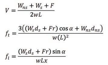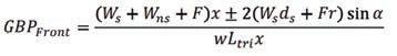 If the distribution is triangular towards the front, the front left and right bearing pressures are given by: