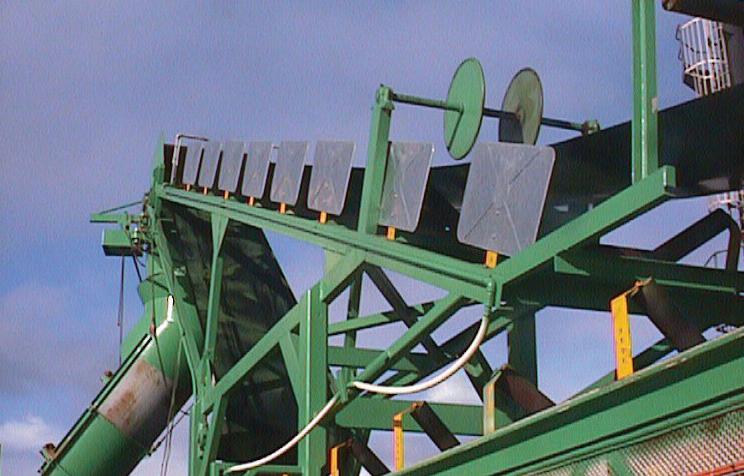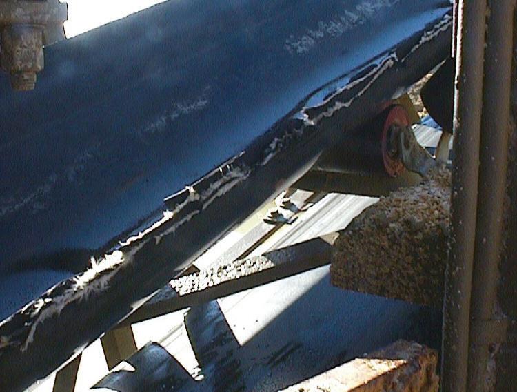 A balance between the practicality of install and the perfect location for tracking performance must be sought. A tracker at 2 times the belt width from a pulley is better than no tracker at all. Short feeder conveyors have had trackers placed in the centre of the return strand at around 1 belt width from each pulley and in order to get them to have a sufficient effect, the pressure on the tracker must be so much greater, that it warrants a design check of the tracker’s capabilities. Other options for short centre belts are inverted vee guide rollers or fixed side guide rollers. These are a crude last resort. The inverted vee rollers train the belt via constant pressure and go against a belt manufacturers’ concerns for transitioning belt profiles from troughed to flat over a given distance. Side guide rollers are a hard stop on a belt edge that may be inconsistent and sometimes the mis- tracking situation is so bad the belt folds against the side guide roller.