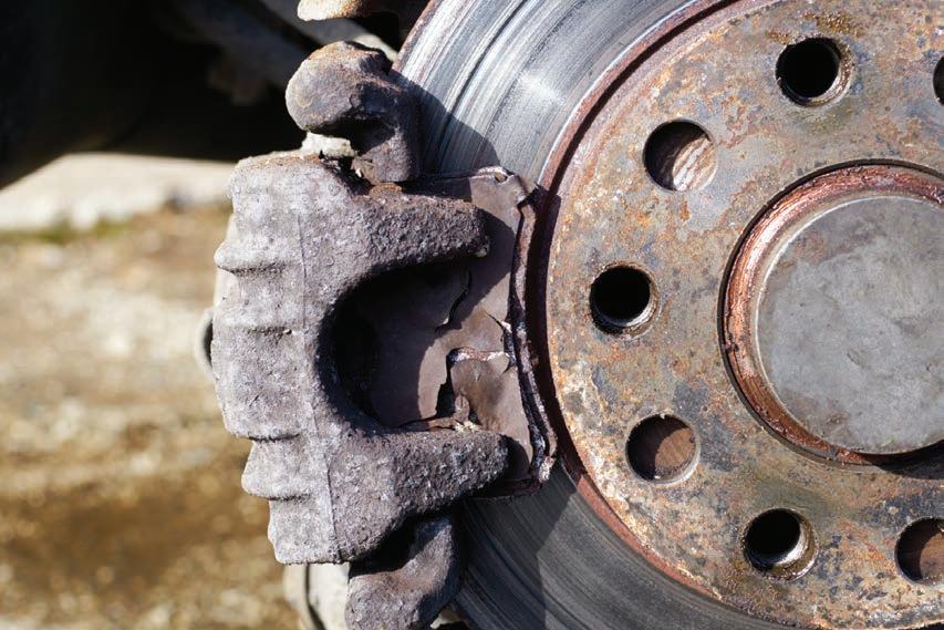 Although the primary focus might be to fit a new set of pads or disc-brake rotors, take the opportunity to thoroughly inspect the entire braking system and other hard-toaccess components while the wheels are off. This could include sighting and feeling the brake hoses for cracks, deformities, or connector corrosion.