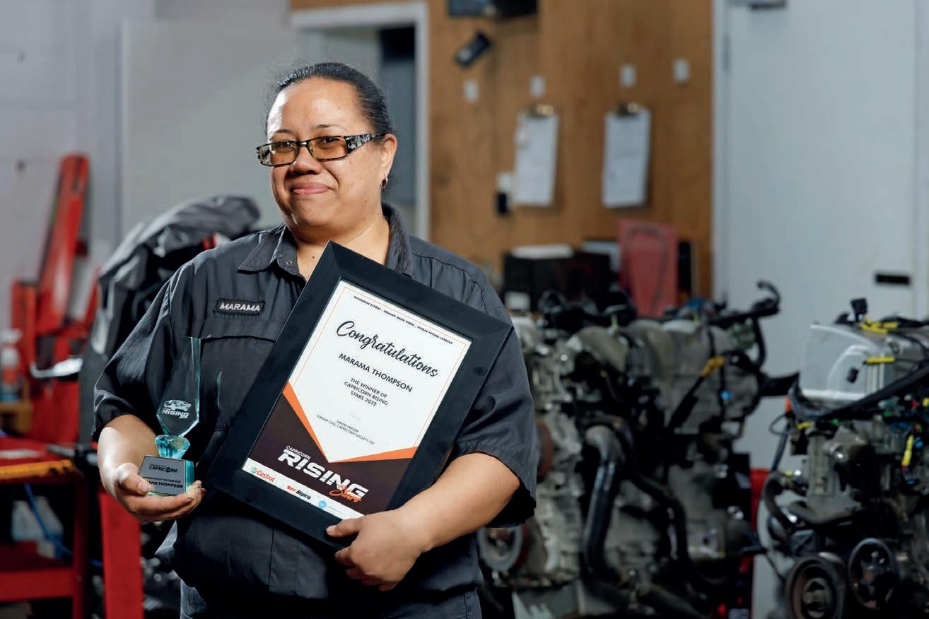 Capricorn Members are encouraged to nominate their star apprentices as they continue to develop their technical proficiency.Nik Fowlie, Auto Super Shoppes Eurotech Hamilton owner, with Marama Thompson.