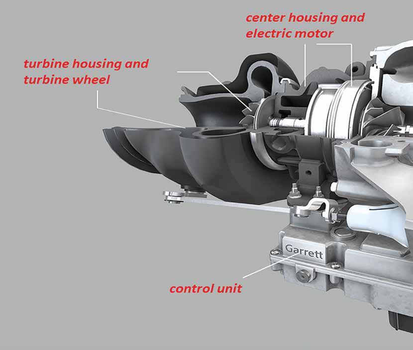 Garrett’s E-Turbo utilizes a high-speed electric motor positioned on the turbo shaft to spool the compressor more rapidly and eliminate lag, dramatically improving transient engine performance and lowend engine torque. The new technology