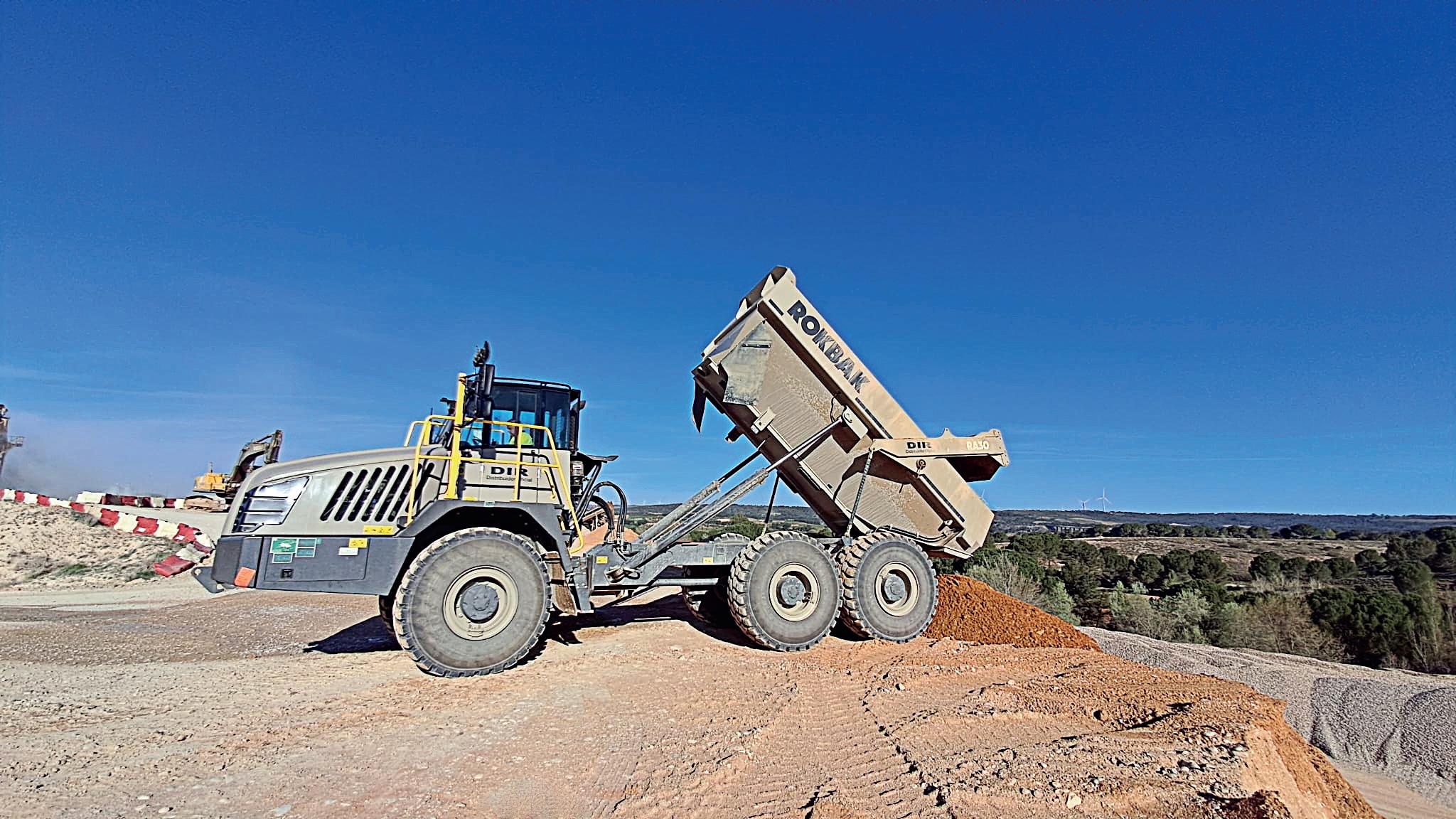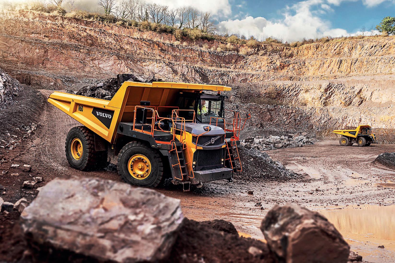 Volvo R60 rigid haulers at work in a quarry.
