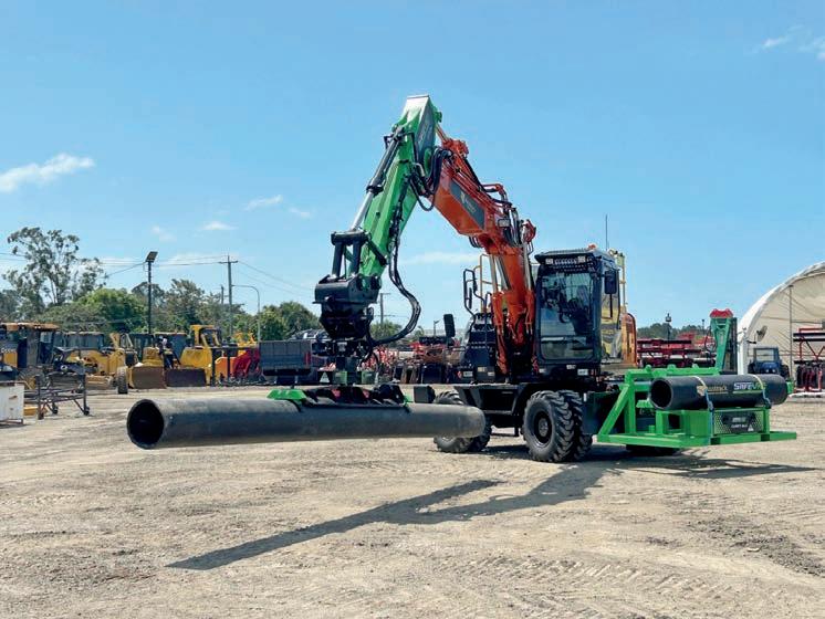 “A single shoe unit fitted to a wheeled excavator is ideally suited to handling a range of smaller diameter polyethylene pipes up to 2500kg,” Austrack Operations Manager Dylan Gamble told The Australian Pipeliner
