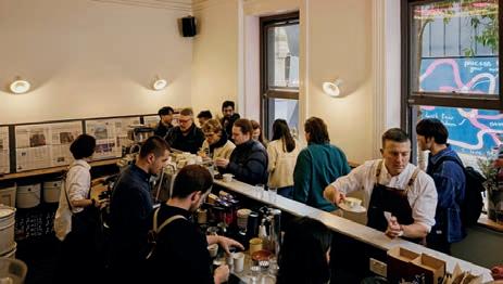 We have seen a lot of people, both baristas and nonbaristas, who are really introverted, but having a space like this allows them to open up and understand co ee. It’s easy to fall into speaking about co ee in that complicated way, but sometimes the audience is trying something new for the rst time and needs to be guided through the experience.