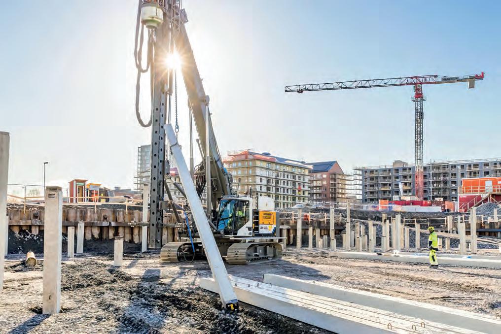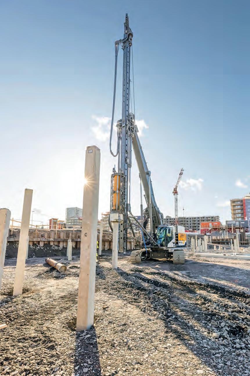 The noise reduction on the jobsite due to the battery- powered piling rig was also continued with the new generation hammer, which has a soundproofed pile helmet and pile helmet guide.