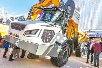 Liebherr is offering the upgraded version Generation 8 version of its TA230 Litronic ADT. Empty vehicle weight is 24.6tonnes while load capacity is 28tonnes. Power comes from a six cylinder, Liebherr diesel, which features exhaust gas aftertreatment to meet the Stage V emissions requirements. The 12litre diesel delivers 265kW and is said to be responsive and economical on fuel, allowing a top speed of 57km/h. The 18.1m3 capacity dump body is made from hard wearing steel for long life, with a profile that allows efficient dumping. Maintenance of the truck is said to be eased due to grouped service points. Aimed at use in the earthmoving and extraction sectors, the truck is rugged and durable according to Liebherr. A specially modified version is also available for use in tunnelling projects. The design has been proven in use and won a Red Dot design award.