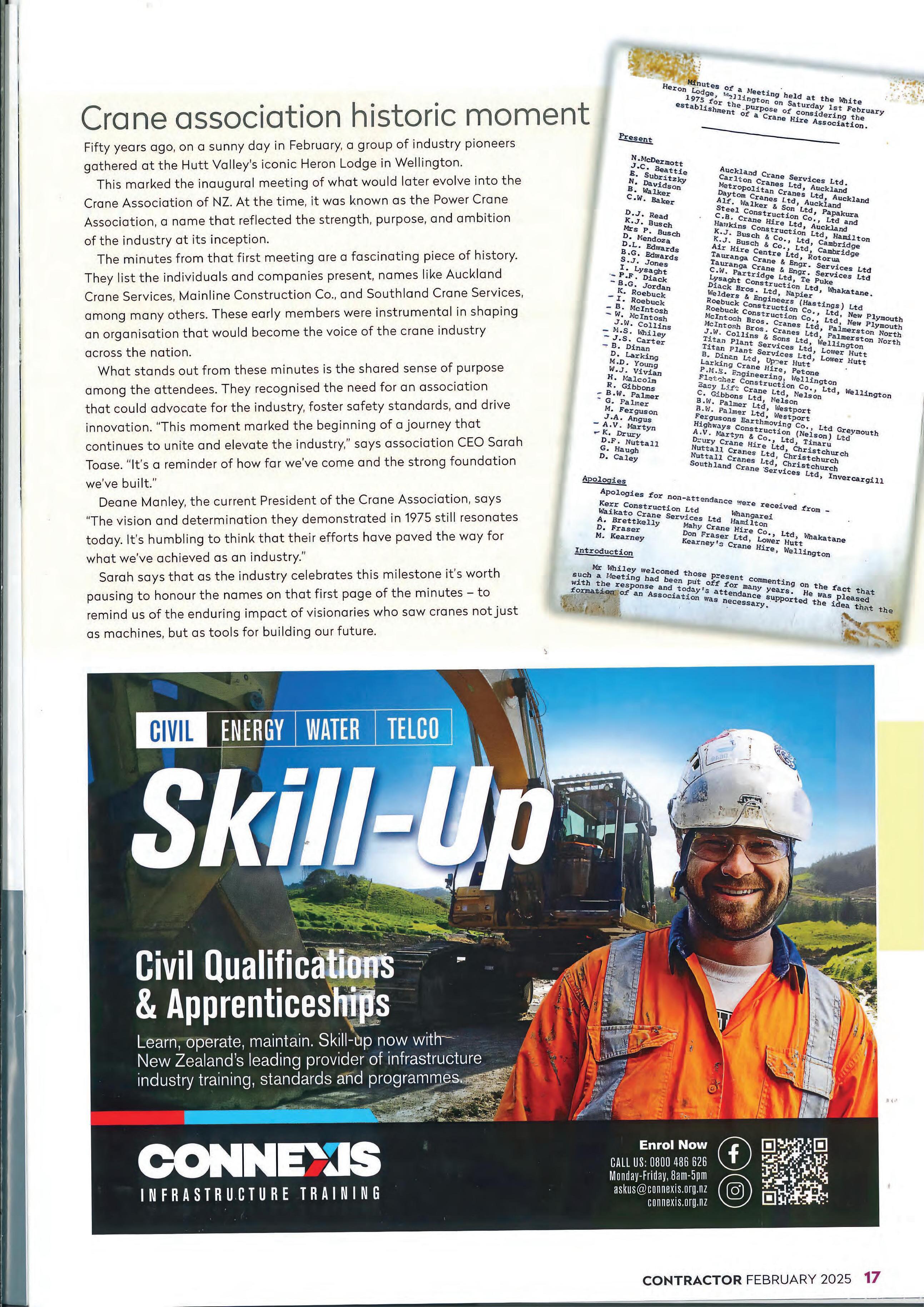 As always, the team at Cranes and Lifting has worked hard to bring you what we hope is an interesting mix of news and information. In this issue we congratulate our good friends at The Crane Association of New Zealand as they celebrate 50 years of lifting.