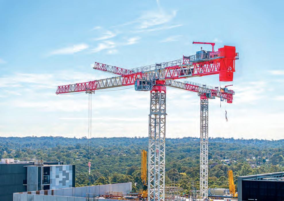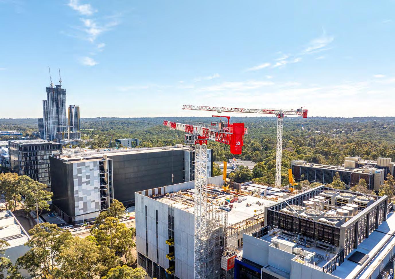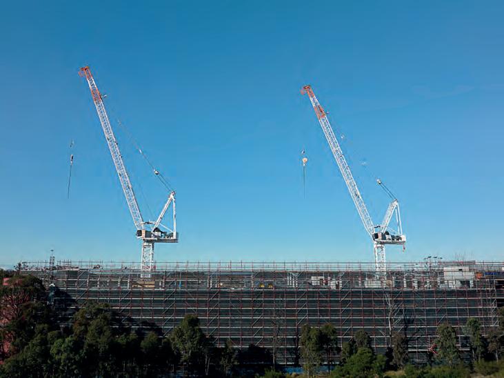 cranes erected, with a third to follow on the multi-storey car park. Resolution Rigging is supplying cranes to the new Westmead Integrated Mental Health Complex, an extension of the existing hospital. The team is also engaged at Ryde Hospital, where both flat-top and hammerhead cranes have been deployed, and at the Sydney Biomedical Accelerator, a major medical research facility within the University of Sydney’s Camperdown campus.