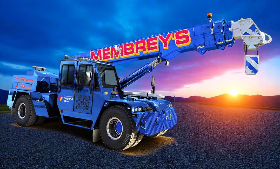 IN WRITING THIS COLUMN, I ACKNOWLEDGE that early September was a dark and difficult period for the industry but Craig Membrey, Managing Director of Membrey’s Transport and Crane Hire, with support from the industry, brightened the mood immensely. One crane now holds something deeply personal for Craig: the memory of his son Rowan, and a message he has carried for more than a decade – that talking about mental health can save lives.
