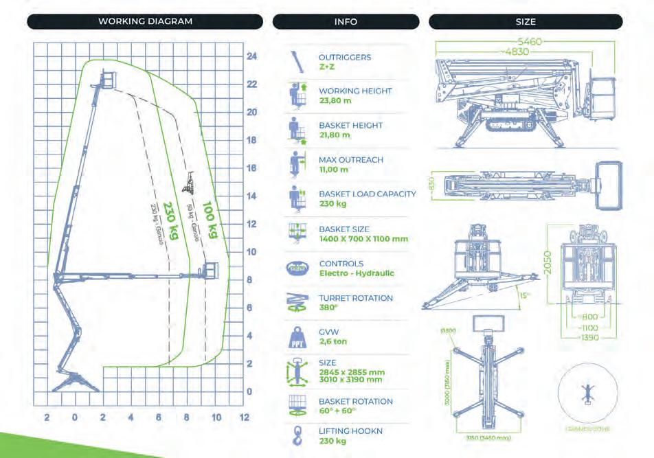 Longest powered boom to 20.9m with 5.5m telescopic fly extends to 26m