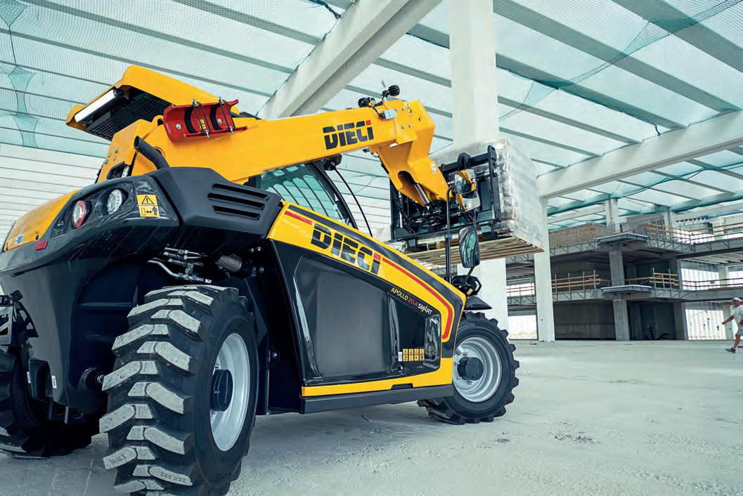 The APOLLO SMART 20.4 telehandler by Dieci is built for tight spaces without compromising precision. Its sleek design ensures effortless manoeuvrability, a spacious cab for comfort, and a durable boom for heavy loads at impressive heights. Three steering modes guarantee smooth navigation, while the advanced engine and simplified maintenance deliver unmatched efficiency and savings.