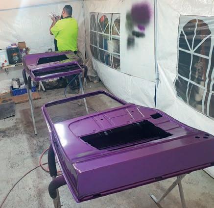 Ross started the mammoth job of painting in July 2023. The panels required under guard spray, then three coats of black, two coats of purple, finished with four coats of clear.