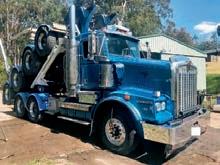 Twin steer cab chassis fitted with ROPS, factory GVM 50t, 228,250km (subject to change), 20,600 engine hours.