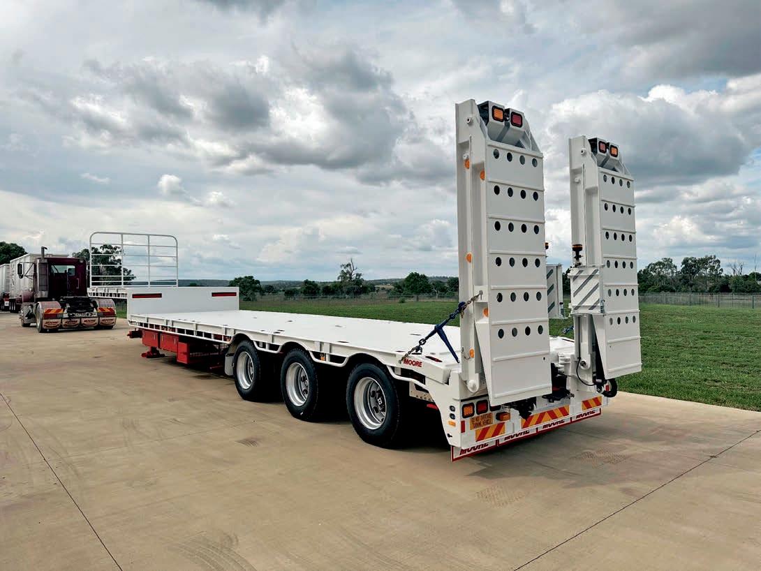 LUSTYREBUILTJRM3X4DOLLYNECK&2X4DOLLY COMPLETE 1994,fullhydraulicwidening,lowloader2.50mto3.60m(hydraulicwidening) 10.50mdeck,fullyrecon,hydraulicsuspensionoverall,newbpw/axlesfitted,all newalloyrims,lowprofile255x70x22.50tyres,Hondapowerpackfor hydraulics,comeswithreconditioned2x4lowloaderdollytosuit,fullychecked outwith4springsuspensionon9.75x17.50tubelesstyres*rims(85%clean skinswit2xspares)capacityloadto45tonswholepackage,withrego.S194.