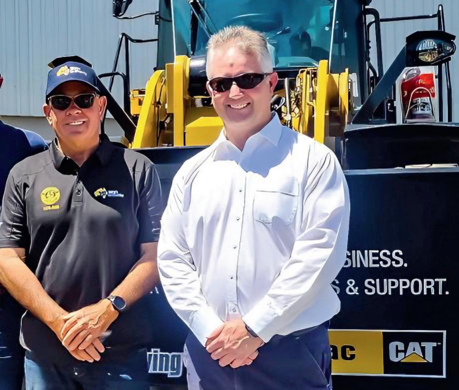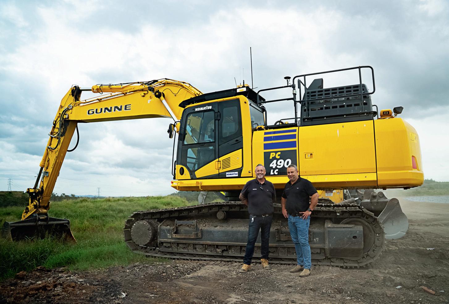 Dean Bailey (left) with Daniel Cullen are pleased with the performance of the excavator.