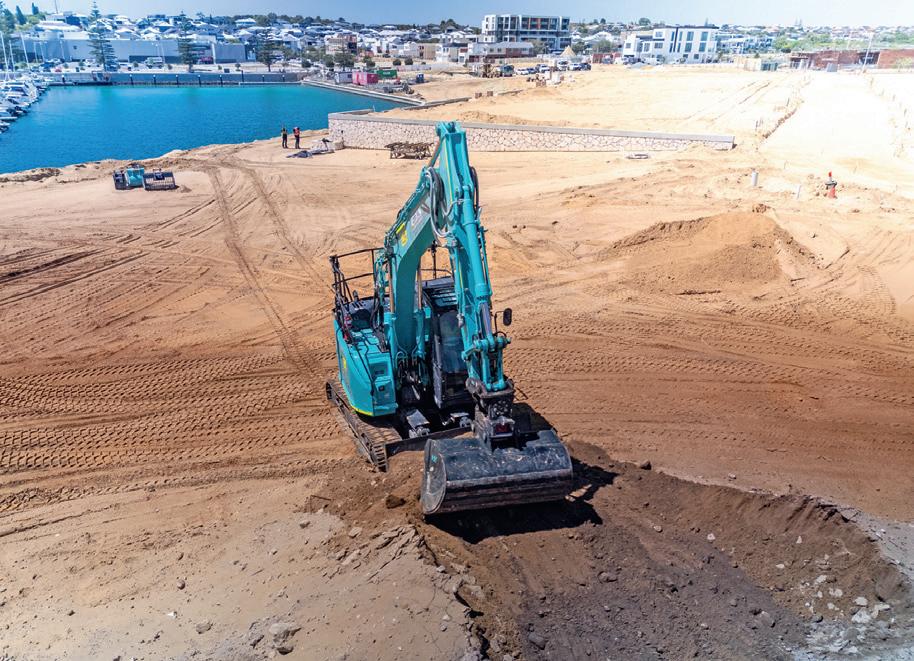 A KOBELCO SK135SR-7 FITTED WITH TOPCON 3D MC-MAX EXCAVATOR MACHINE CONTROL HAS MADE ALL THE DIFFERENCE AT A PERTH BEACHSIDE PROJECT.
