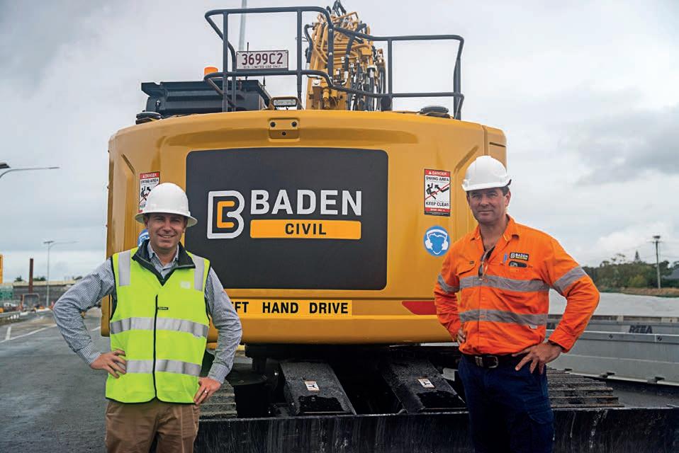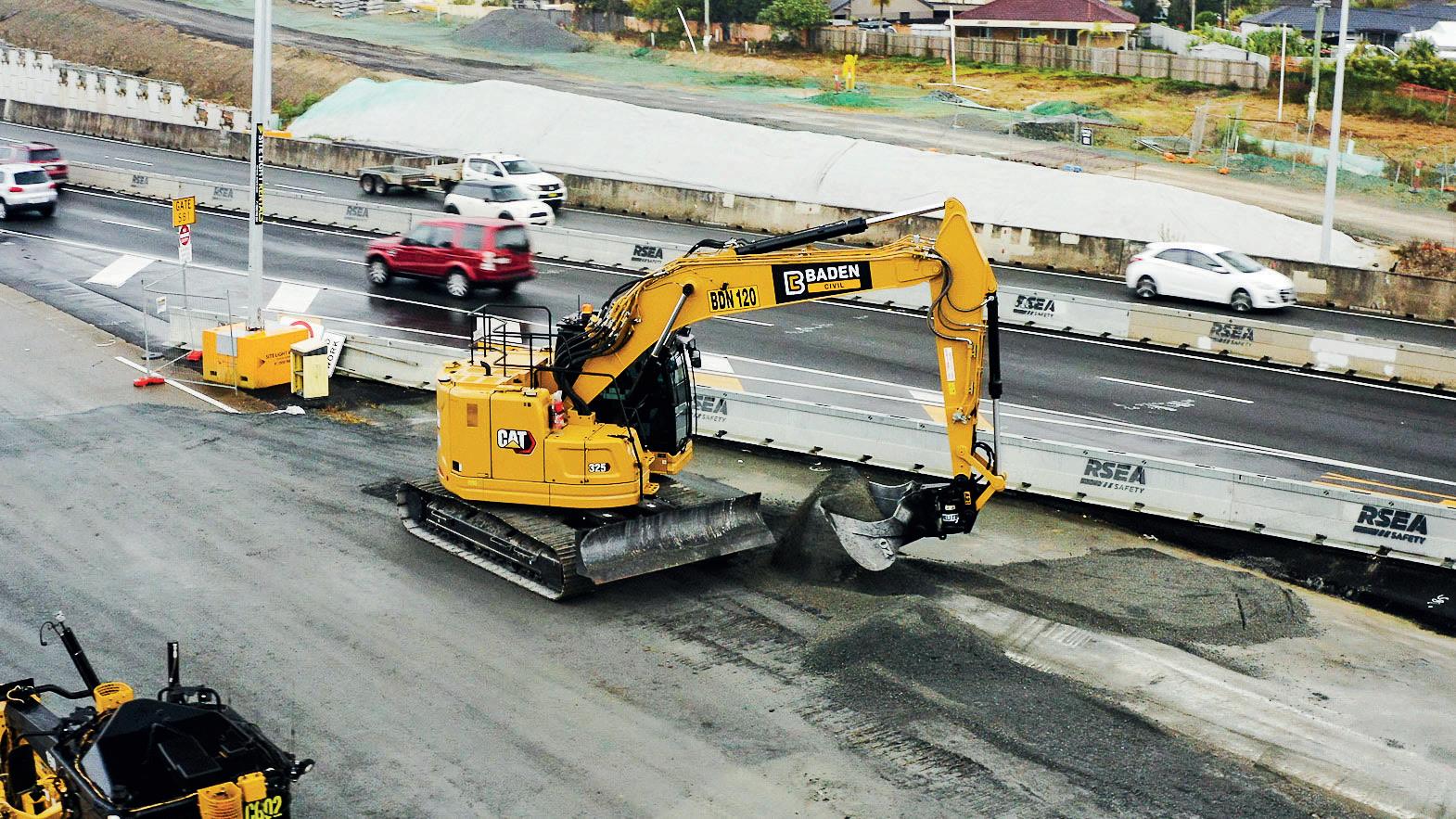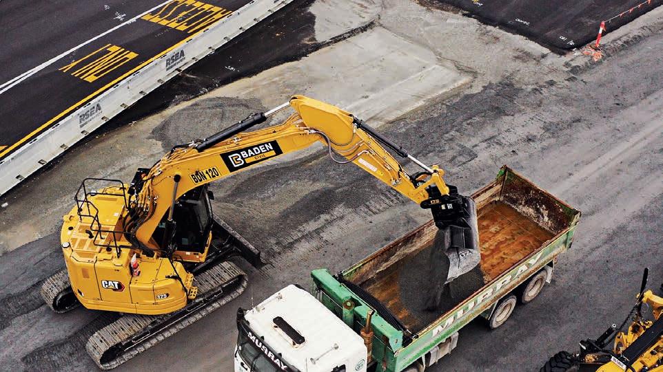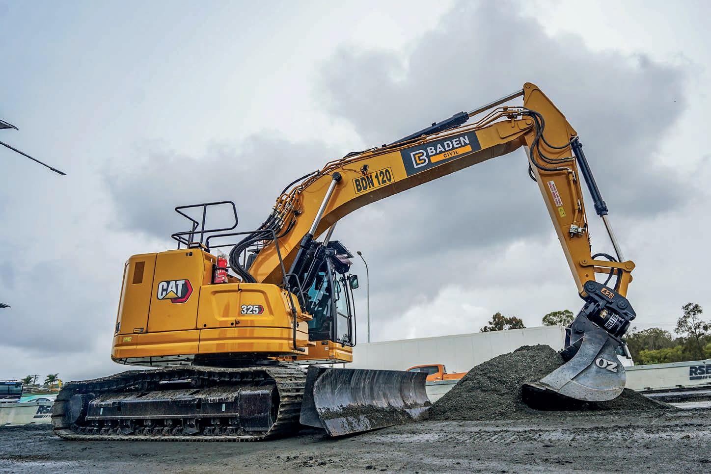 fleet; and Clay Badenoch of Gold Coast-based Baden Civil, where a brand-new compact radius Cat 325 excavator is helping give his operators room to move on crowded urban worksites.