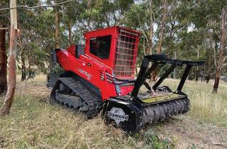 Mulcher, cuts 2m wide, has vertical lift for tree pruning, sideshift swing to cut beside tractor, heavy swinging cutters, will cut heavy scrub.