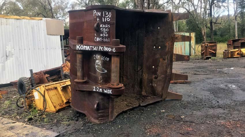 Bucket suit 80 ton Komatsu PC800-6, Jaws brand, 2.2m wide, reversable teeth, pins are 130 and 110, ears are 560-630, and pin centres are 660. Weight of bucket is 5.7 ton.