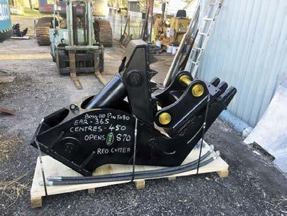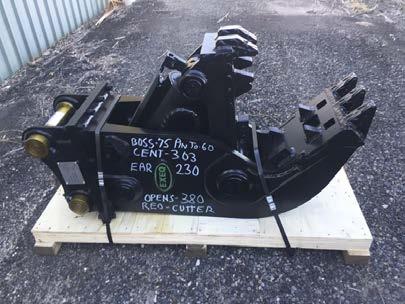 Pulveriser,has reo bar cutter, manual 360 degree rotation, opens 850mm wide, head has 100 bosses, pinned to 80mm, 375 between ears and 520 pin centres.