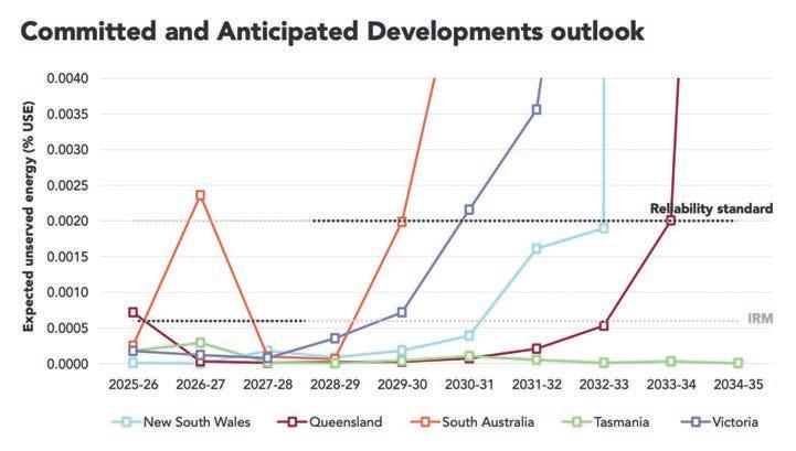 forecast in Queensland in 2025–26 due to reduced generator availability, higher forecasts of maximum demand and delayed project commissioning. A reliability gap is forecast in South Australia in 2026–27 (39MW) when the Torrens Island B Power Station (800MW) is advised to retire.