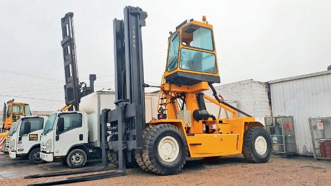 CLARKC500Y650D 1983,stacks28,000kg20' highcubes3high.Hassideshift&fork positioningplus8'forks.Cummins6CTdiesel, ClarkHurth28000powershiftxmsn.Easy staircaseaccesstohighviscab. 084AUFL4890. TA1153864.