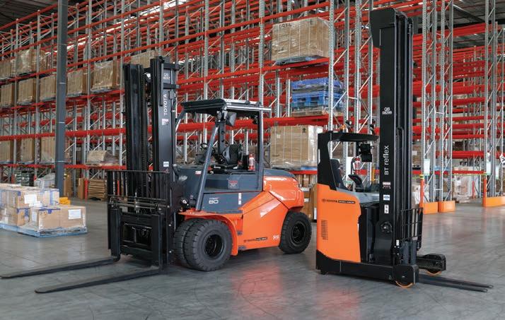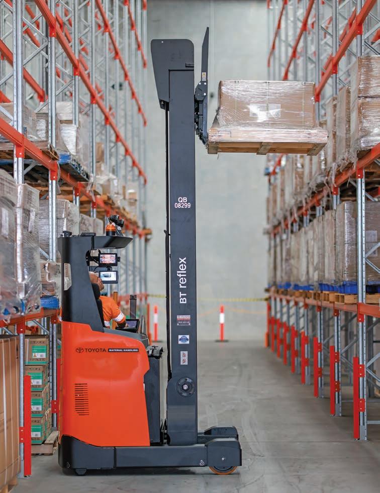 The new 9FBMT unit and batteryelectric reach forklift join three other zero-tailpipe-emission Toyota machines at the Eagle Farm facility, meaning the warehouse in Brisbane’s east now exclusively uses battery electric material handling equipment.