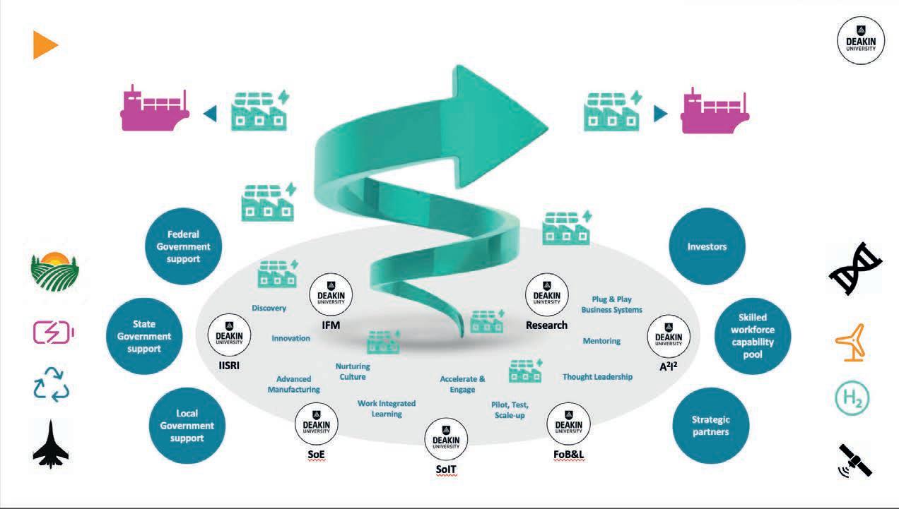 strategy to create industry-academic partnerships that drive innovation and support the growth of the advanced manufacturing industry in Australia. The goal is to create an environment that supports the translation of research outcomes into practical, commercially viable solutions.