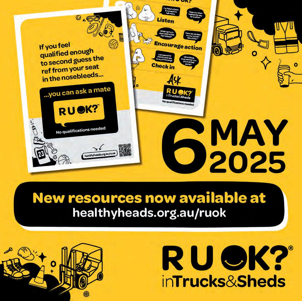 Join the movement, download the updated resources, register as a Company Champion, and support R U OK? in Trucks & Sheds. Together, we can build a supportive culture across the road transport, warehousing and logistics industries. Let’s “Ask R U OK? – No qualifications needed”. For more information, head to the Healthy Heads website.