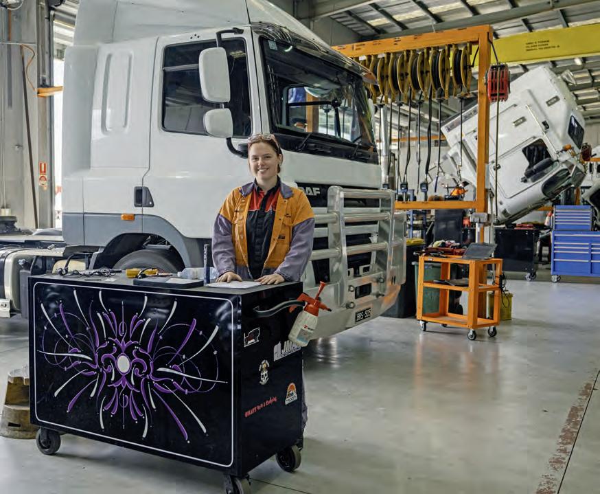 Warren Aitken found himself at Victoria’s Hallam Truck Centre in front of Inndyah Chenoveth, who may not have grown up loving trucks but is now thriving in her role within the industry