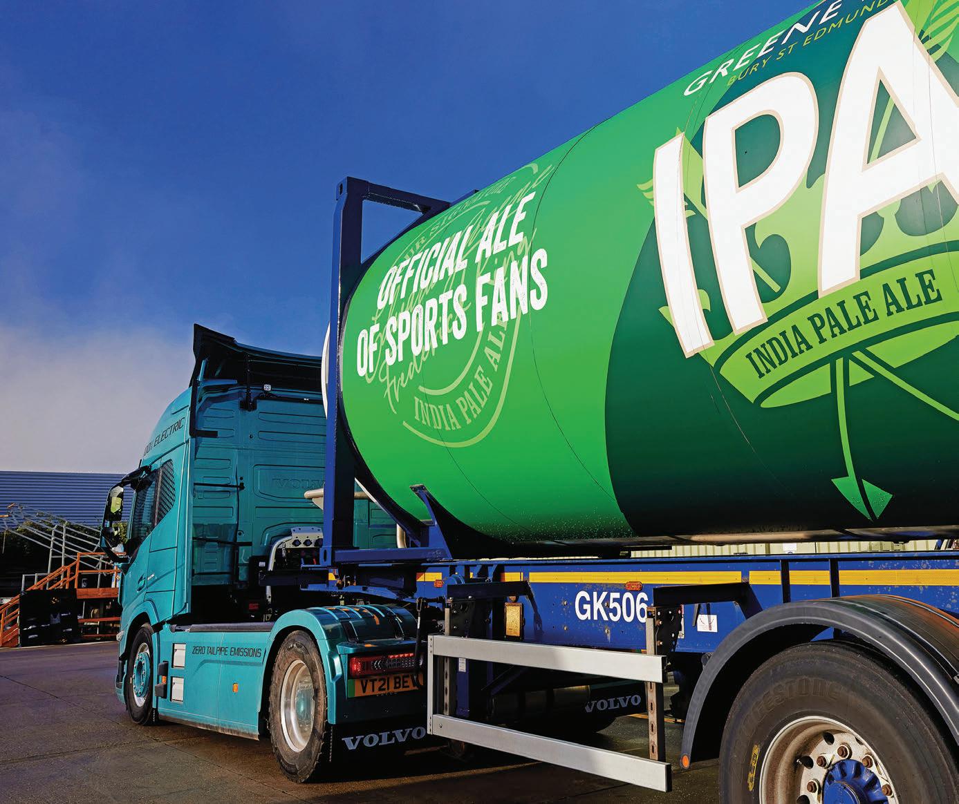 The industry is currently in discussion with the UK’s Department for Transport to find a solution. That all said, there are some operations where a longer 6x2 electric tractor could work, and pulling one of Greene King’s short ISO tank trailers is one of them.