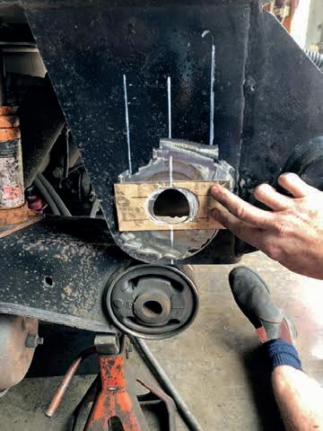 5. Cut pivot bolt openings in hanger to suit step in repair adaptors. Openings must be level horizontally and approximately 78 x 58 mm in size.
