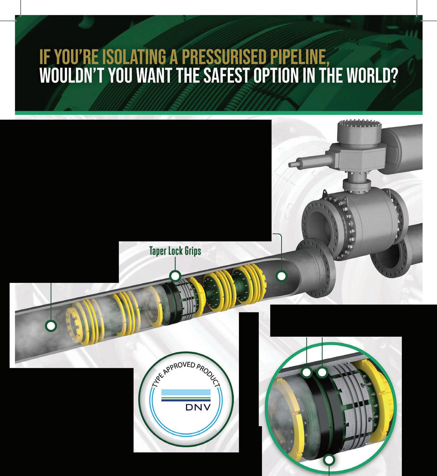 The Remote Tecno Plug ® provides fail-safe double block and monitored isolation of pressurised pipelines while the system remains live and at operating pressure.