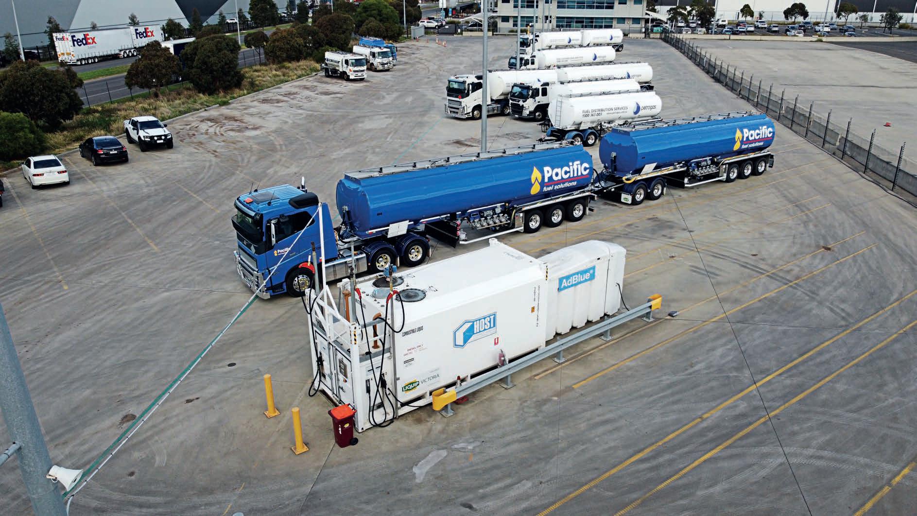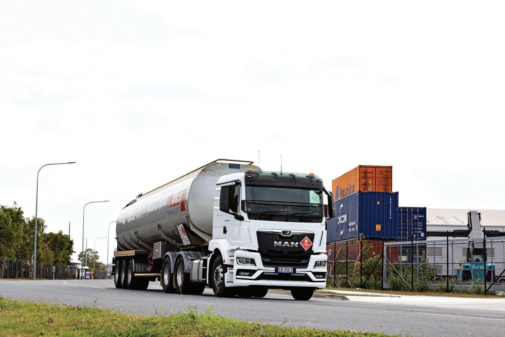 Hills Tankers, a family-owned fuel carrier, delivers jet fuel on four dedicated A- and B-double units here seven days a week. Earlier this year, it introduced a third generation MAN TGS 540hp prime mover on this run. The new truck has impressed to the point the other three vehicles will be converted to MANs by the end of the year according to Scott Cullen, Hills Tankers Chief Operations Officer.