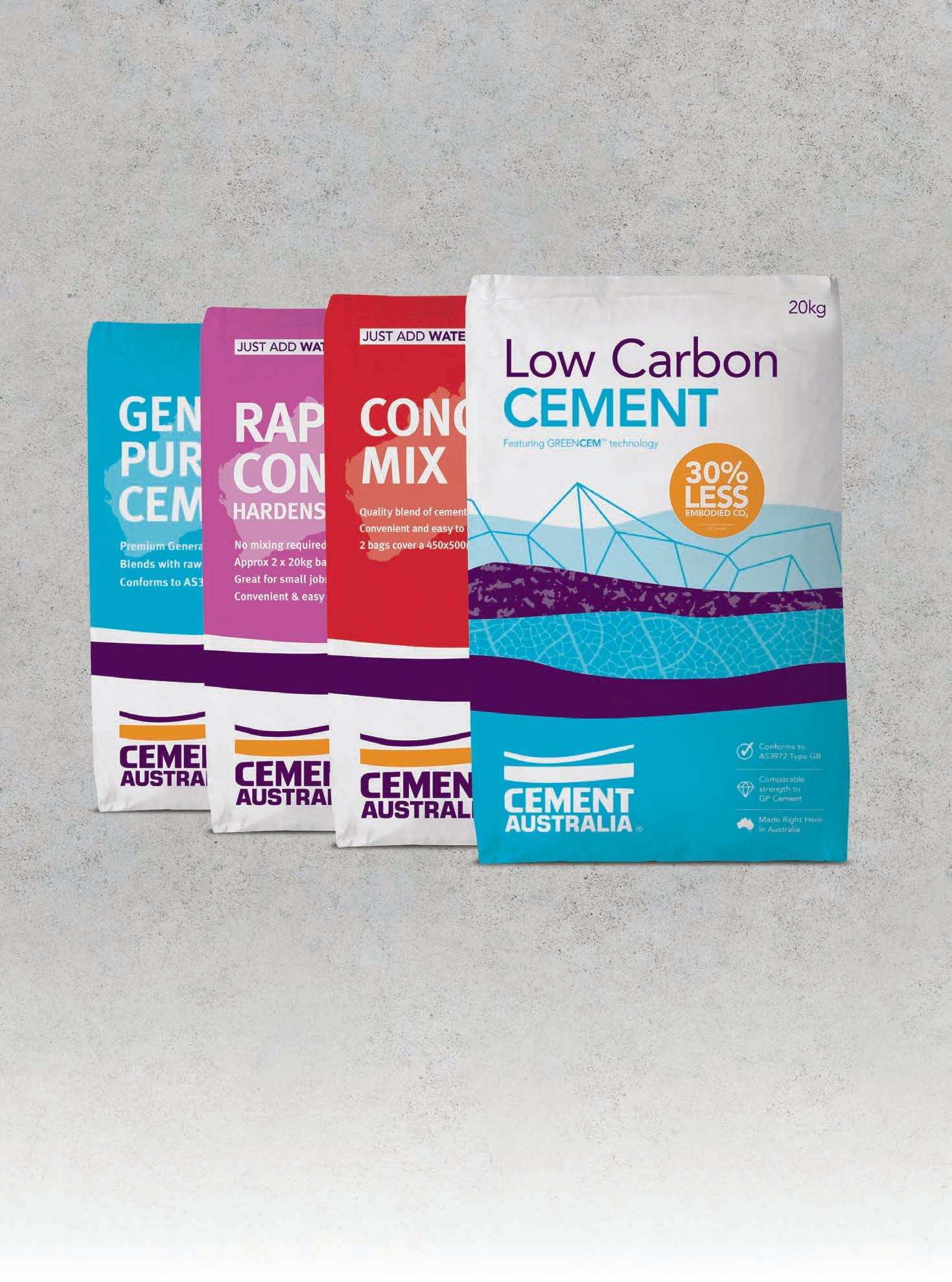 If you’re ready to make the switch without making a difference to how you work — and just as tough as what you’re used to — give Cement Australia’s Low Carbon Cement a go.