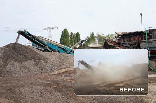 be disposed of, as there is with extraction systems. The benefits of dust suppression include short and long-term workplace safety, improved site conditions, neighbour relations and environmental impacts and increased machine longevity.