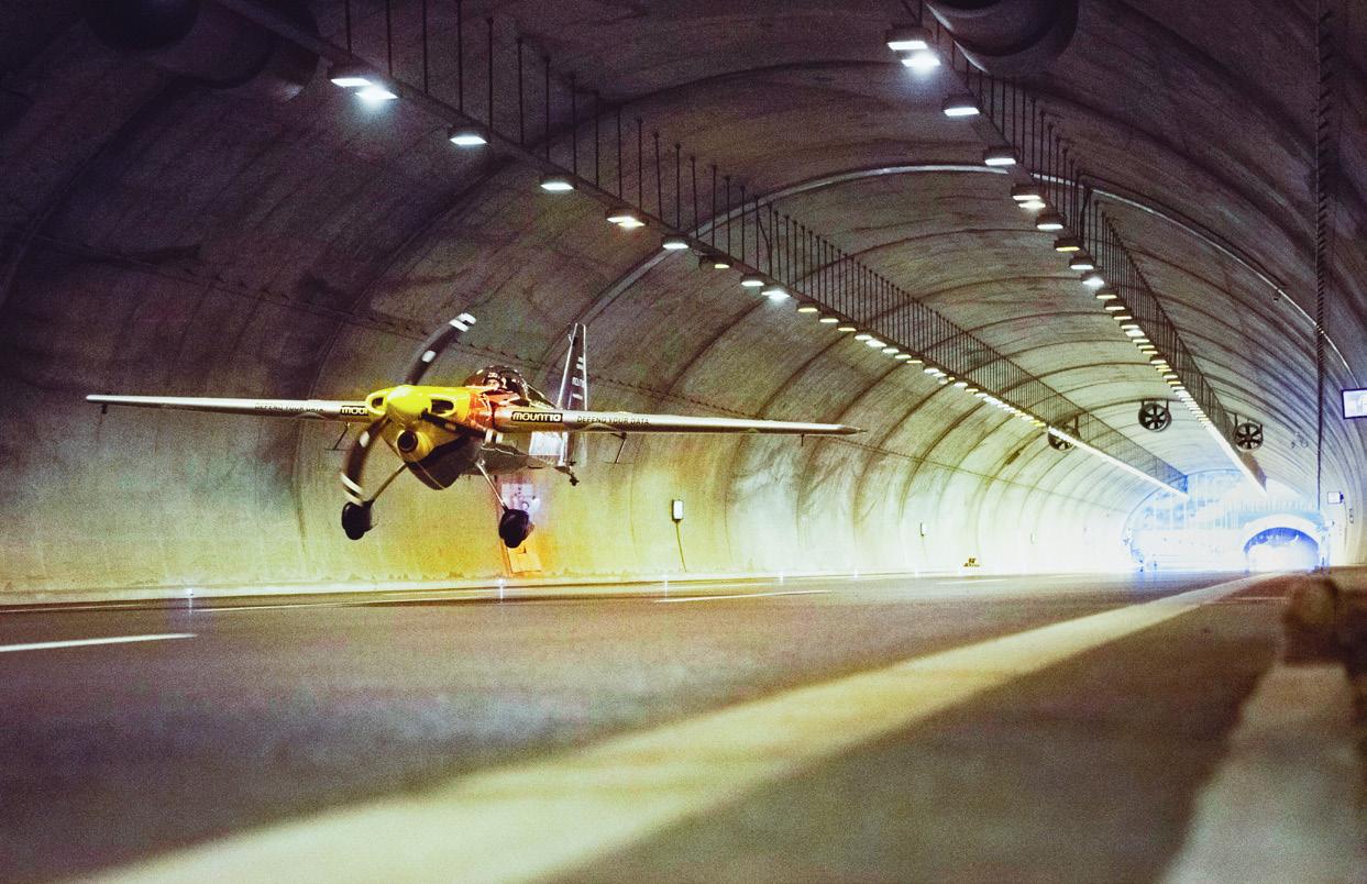 a tricky takeoff inside the first tunnel, flashed through an open-air gap and then continued his 245kph flight through the second tunnel, flying less than 1m from the asphalt.
