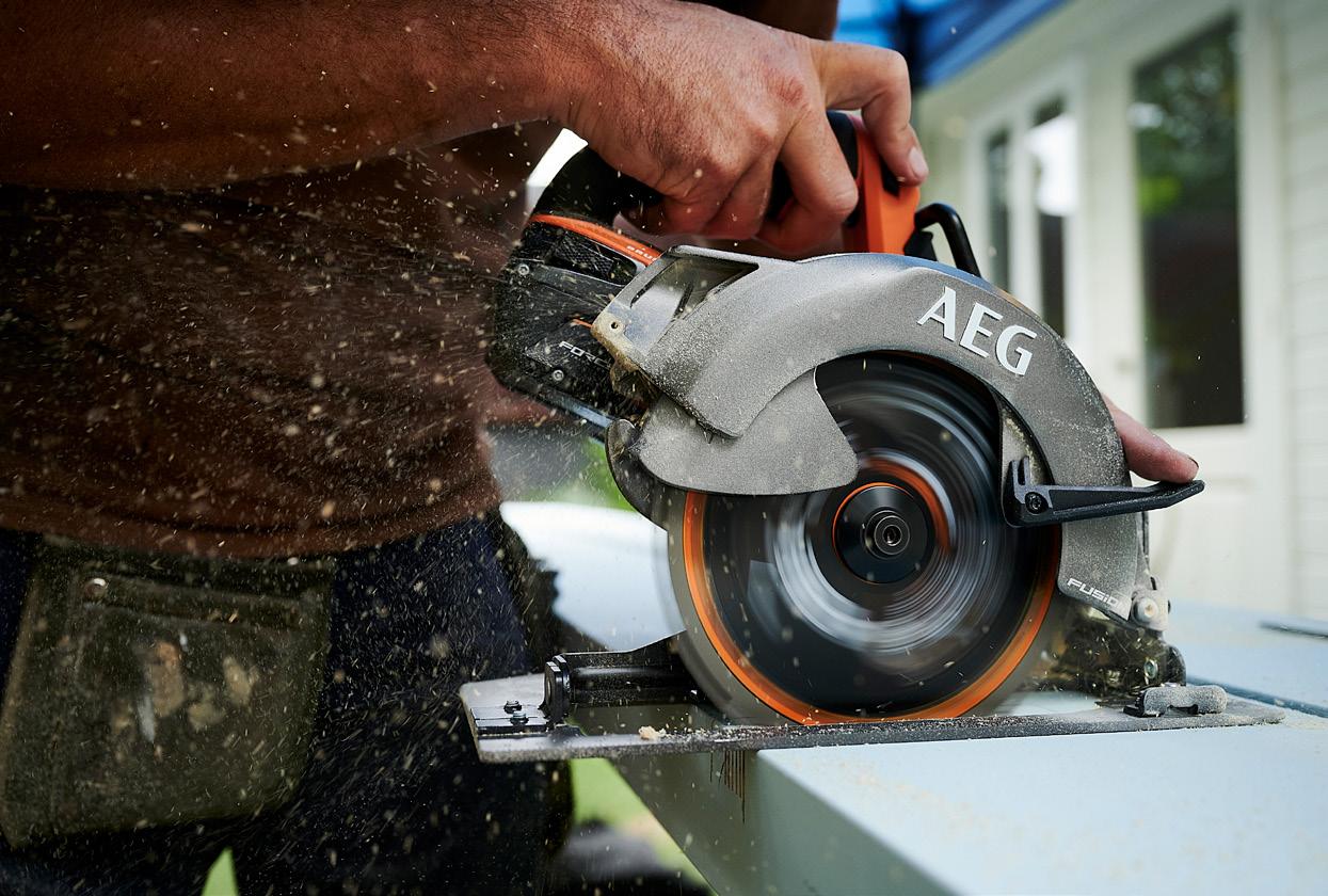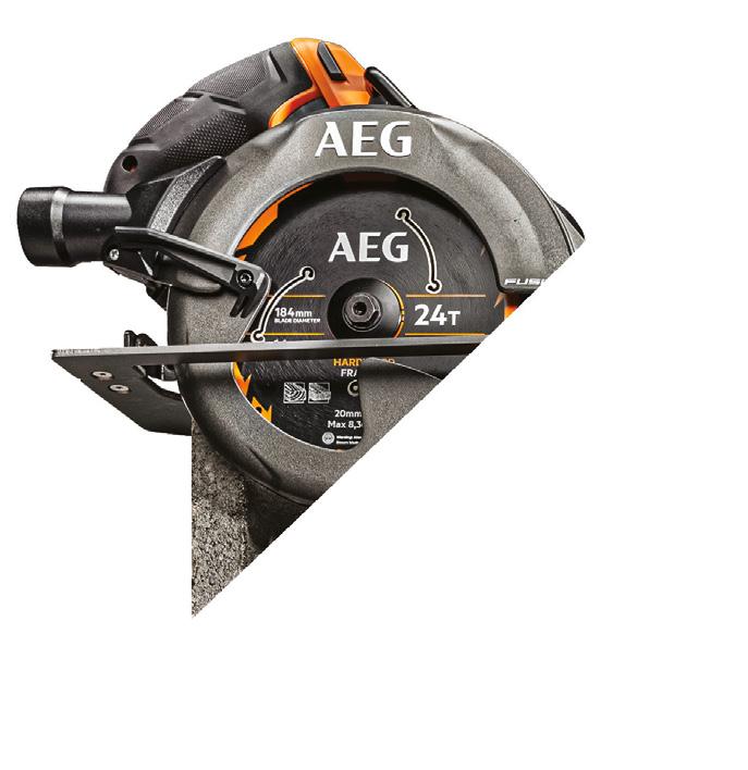18V FUSION 184MM CIRCULAR SAW A18FCS680 Need this delivered to your site? Call 1300 AEG ONSITE and we will come to you. LEARN MORE ABOUT AEG ONSITE HERE > VISIT AEGONSITE.COM.AU TO GET YOURS DELIVERED TO YOUR SITE 30% MORE POWER† | ANTI-JAM FIN | ALUMINIUM GUARD