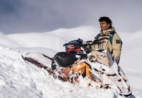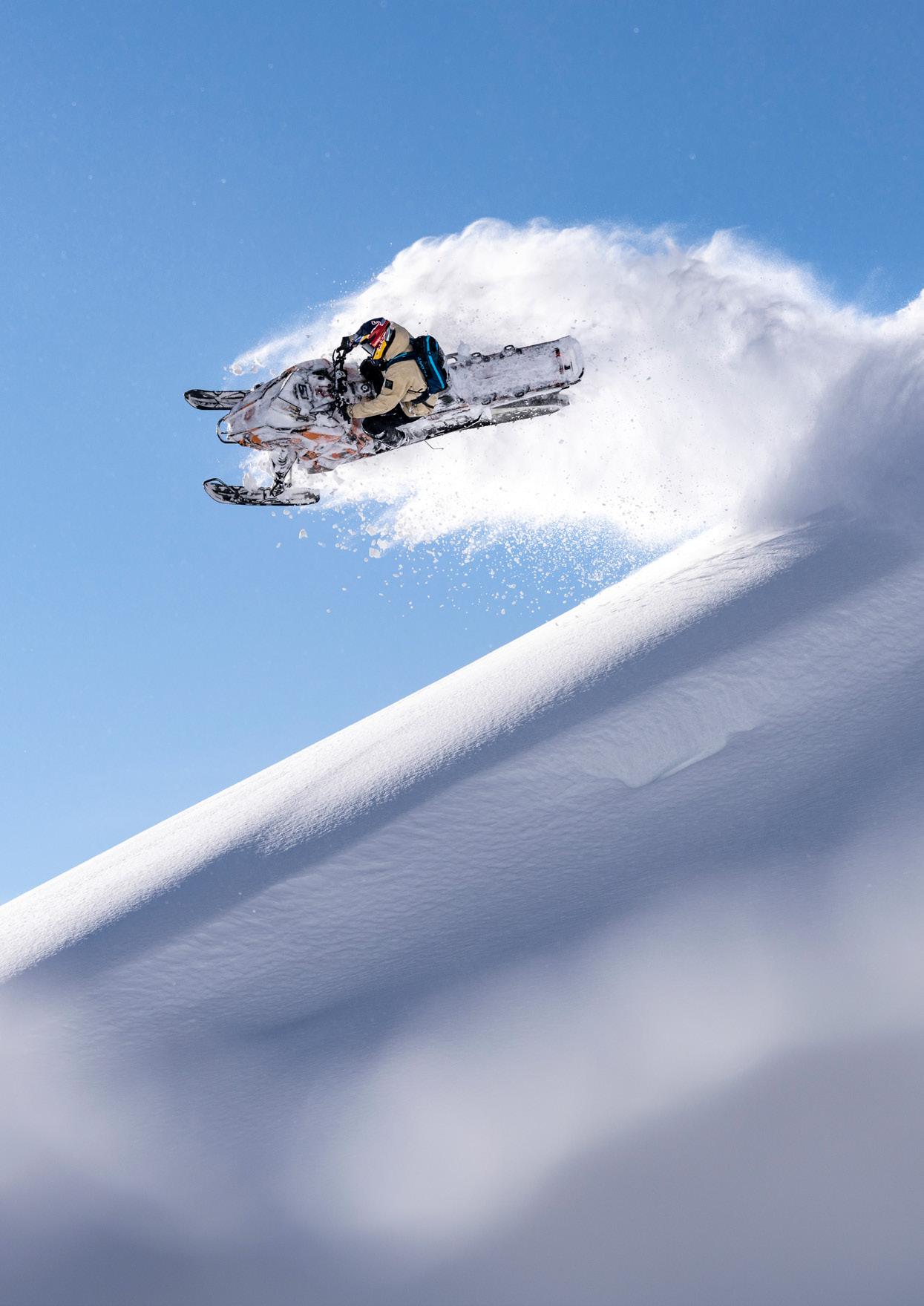 Hurling a 230kg snowmobile skyward is all in a day’s work for Logan Pehota. He’s got his little backpack on –probably with his lunch in it, we just don’t know – and he’s fair got that sled cranked over and bound for glory.