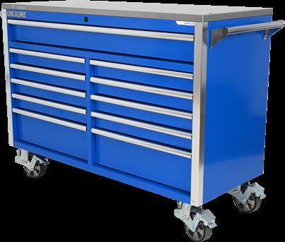 Kincrome’s Tool Armour range of storage and tool kits is serious professionalgrade equipment. With 1.5mm-gauge steel construction and 100kg load-rated ball-bearing slides, the boxes are built to last and include a host of features like LED lighting, soft-close drawers, suspension castors and magnetic power boards. A modular design means Tool Armour units can be added or used to build larger, or specific-purpose, work areas when needed.