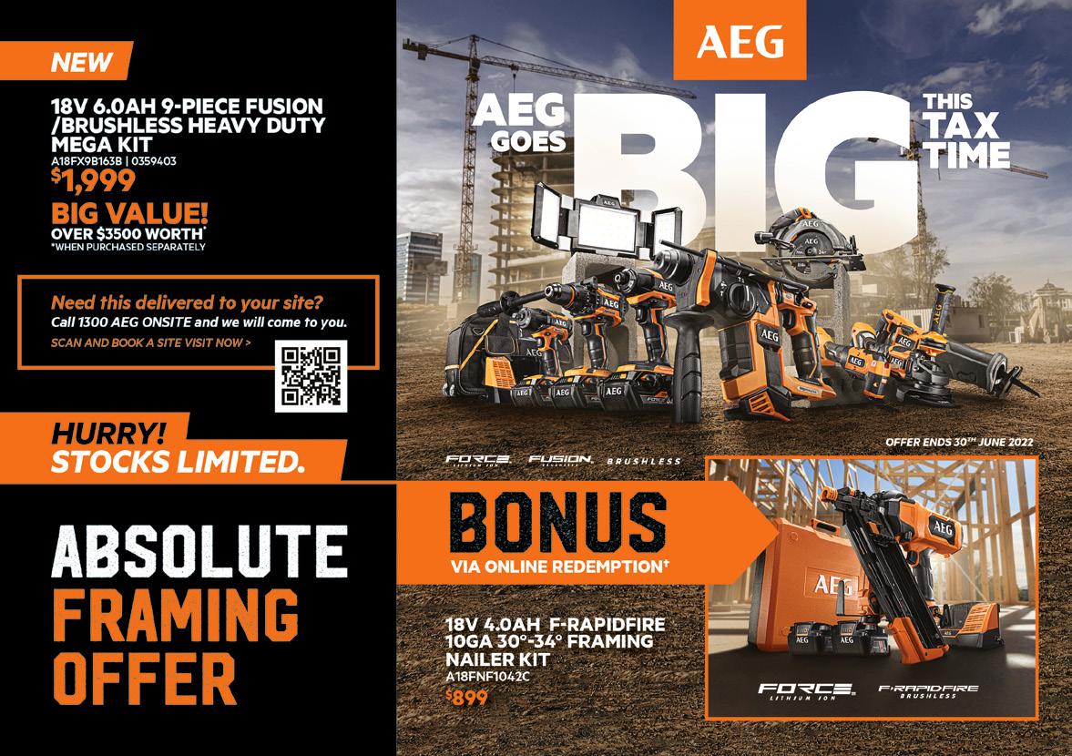 INSIDE 08. Editor’s letter 10. Up front 14. Gadgets 18. From building sites to surfing’s big leagues 30. Smoko with Hendo 32. Sight casting for wild barramundi 38. Bosch and Jed Mildon team up for the longest ever jump on an eBike 44. Latest power tools 50. Top 3 mods for your rig before going inland 54. Be inspired to build better with Lysaght Zenith 56. Nostalgia ain’t what it used to be 60. Kincrome Tool Armour 62. Hot Devil Trade Map Twin Turbo Torch Kit 64. Trading up from a ute to a truck 84. Isuzu and Gothcha4Life 86. News & views ISSUE 76 JUN/JUL 2022