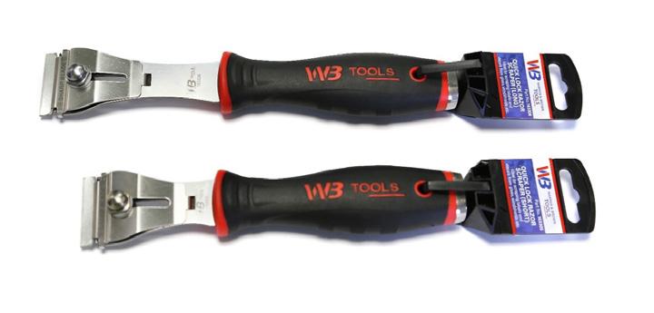 Made from stainless steel 420 J2, these scrapers are ideal for scraping labels and decals from glass and windshields. The ergonomic handle is designed for maximum grip and comfort, and WB Tools scrapers include one extra-heavy duty .020-inch razor blade, which is twice as thick as a standard razor blade.