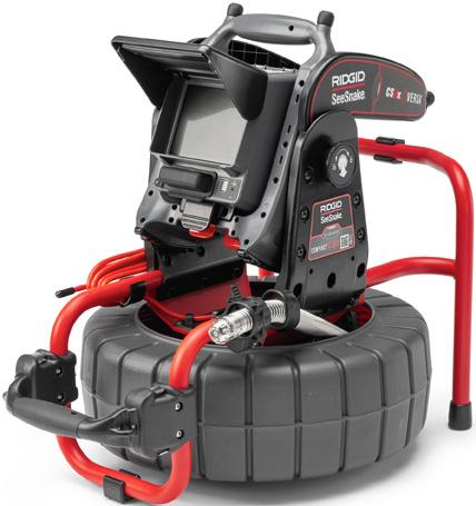 communication between the camera and a CSx series Wi-Fi-enabled monitor, and a high dynamic range image sensor provides a bright, saturated image, even in difficult lighting conditions. The TiltSense inclinometer displays the camera’s degree of tilt inside the pipe when used with a CSx series monitor and is equipped with the high-power FleXmitter 512Hz sonde which is compatible with all RIDGID locators. Use with the SeeSnake CS6x Versa to create the optimal viewing angle and for fast, efficient job setup.