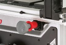 With its all-metal construction, steel body, sturdy table and alloy wheels, this machine is unlike its peers in its stability. It comes with an adjustable rip fence, basic mitre gauge, push stick, euro-style blade guides, 4" dust outlet and a 370W (1/2HP) motor. Micro-switched doors and rackand-pinion blade-guard adjustment are standard features in the 8" saw.