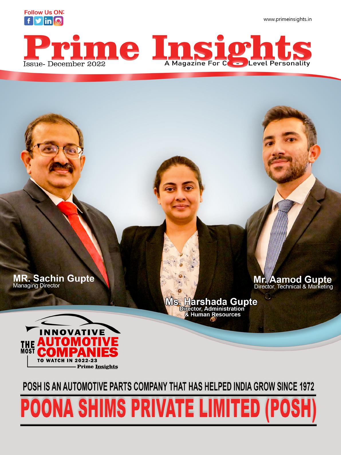 In the cover story of this edition, we have featured the brand story of Poona Shims Private Limited. Abbreviated as POSH, the company is under the shadow of impeccable leaders- Mr. Sachin Gupte, Ms. Harshada Gupte, and Mr. Amod Gupte. The journey began in 1981 in the arms of a small town and now the name is stamped all over the country. The company performs the whole cycle of researching, developing, and designing Stainless Steel and Aluminum Plate Type Oil Coolers for Internal Combustion Engines. They also curate Fuel Rails for multi-point Fuel Injection Systems and Exhaust Gas Recirculation Coolers for IC engines. They have been working meticulously to make modernistic temperature-maintaining parts for the Electronic Vehicle revolution. The entire team is proceeding towards a new face of the technological era to become the ultimate leader of Oil Coolers Manufacturing in India. For the company creating ever-lasting alliances with the customers on the grounds of transparency is always on top. Poona Shims Private Limited will be the flag bearer for making heat exchangers/coolers for controlling the temperature of electric batteries and set motors in the coming years. To make India greener, sustainable and power-efficient is their agenda and we are extremely proud of their vision and mission.