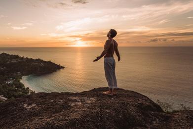 II. Sessão de yoga no topo de uma montanha em Seychelles.